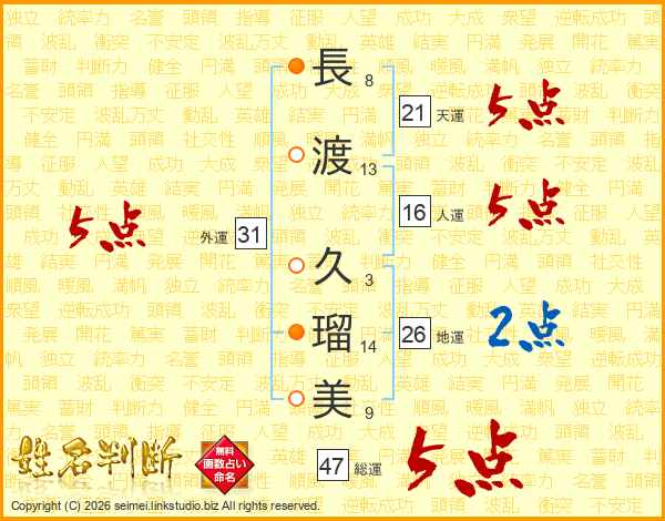 長渡久瑠美さんの総運は47画の5点!