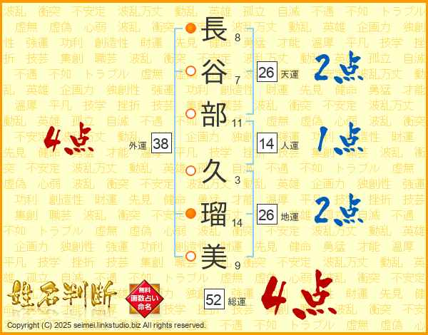 長谷部久瑠美さんの総運は52画の4点!