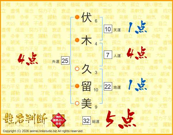 伏(6画)木(4画) 久(3画)留(10画)美(9画)