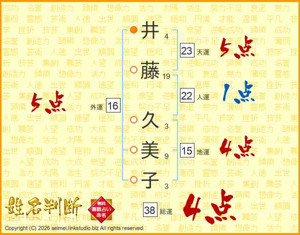 井藤久美子さんの総運は38画の4点!
