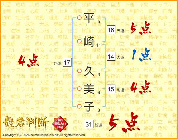 平崎久美子さんの外運は17画の4点!