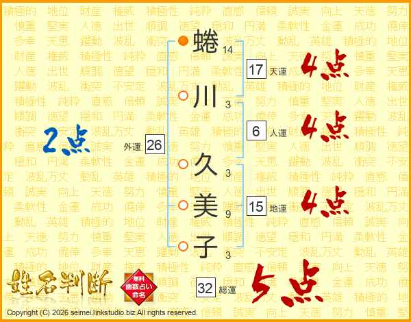 蜷川久美子さんの総運は32画の5点!