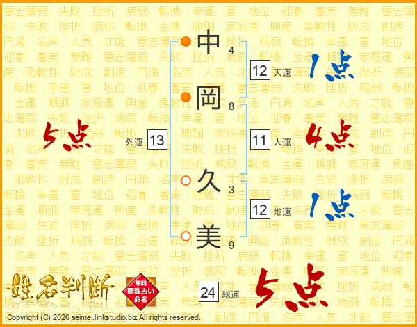 中岡久美さんの総運は24画の5点!