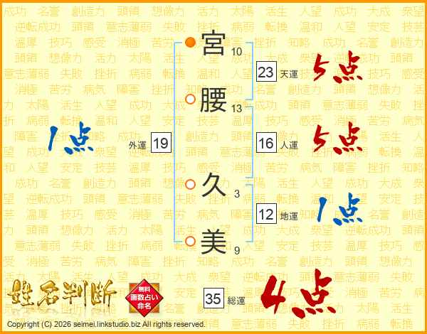 宮(10画)腰(13画) 久(3画)美(9画)