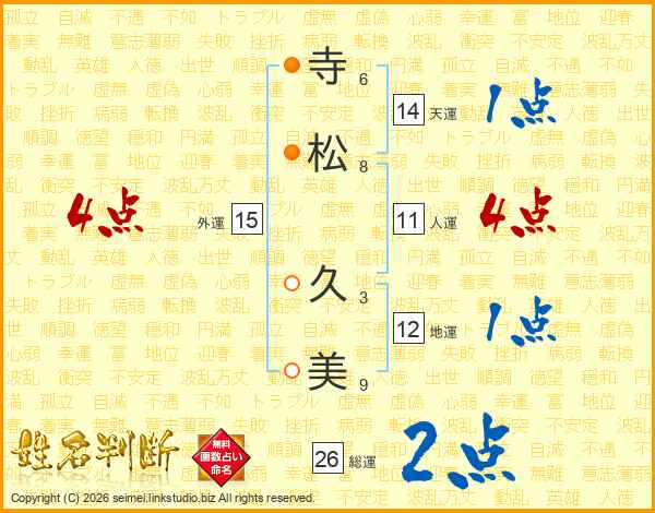 寺(6画)松(8画) 久(3画)美(9画)
