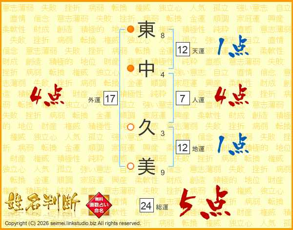 東中久美さんの総運は24画の5点!