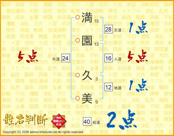 満園久美さんの総運は40画の2点!