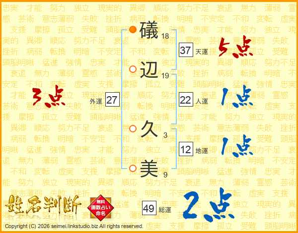 礒辺久美さんの総運は49画の2点!