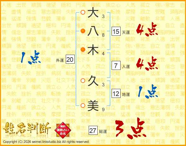 大(3画)八(8画)木(4画) 久(3画)美(9画)