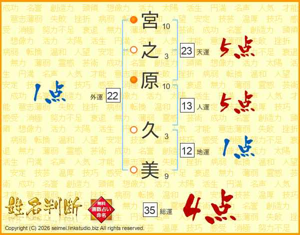 宮之原久美さんの総運は35画の4点!