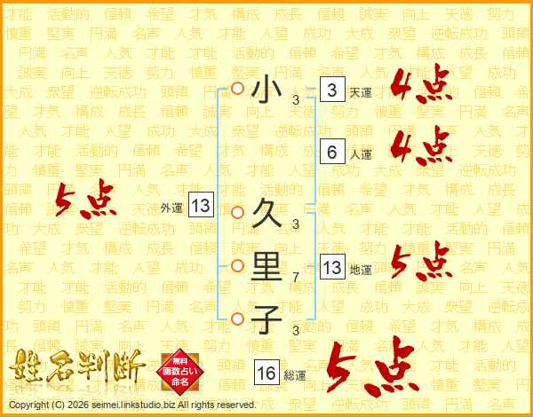 小久里子さんの外運は13画の5点!