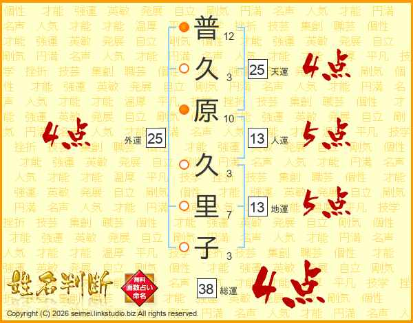 普(12画)久(3画)原(10画) 久(3画)里(7画)子(3画)