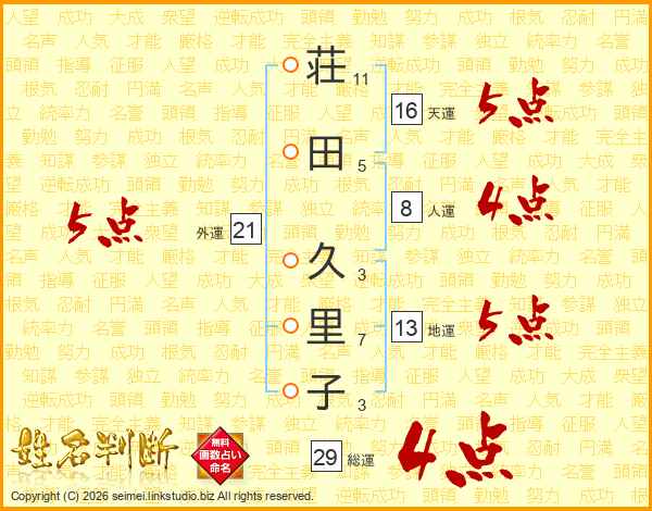 荘(11画)田(5画) 久(3画)里(7画)子(3画)