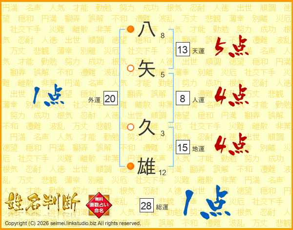 八矢久雄さんの天運は13画の5点!
