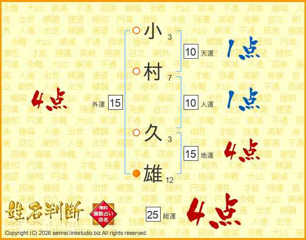 小村久雄さんの地運は15画の4点!