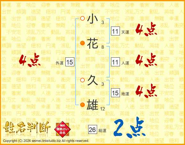小花久雄さんの総運は26画の2点!