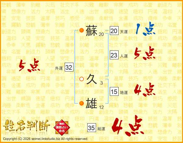 蘇久雄さんの総運は35画の4点!