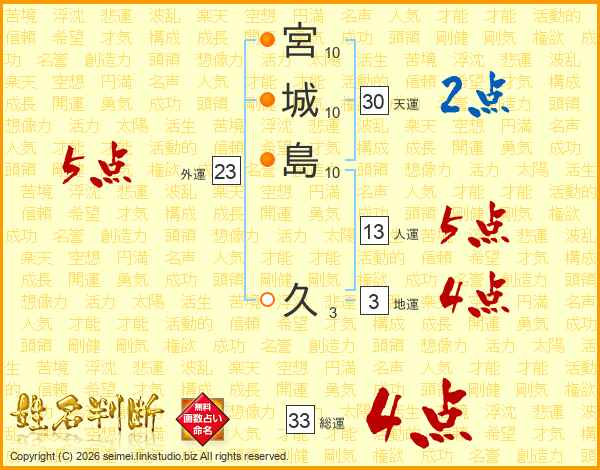 宮城島久さんの総運は33画の4点!