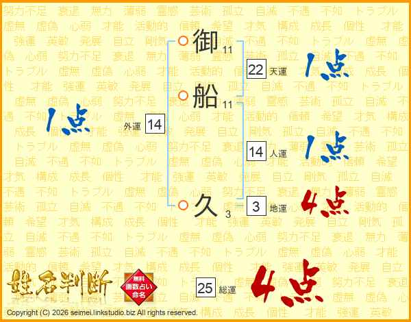 御船久さんの総運は25画の4点!