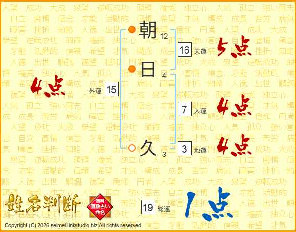 朝日久さんの総運は19画の1点!