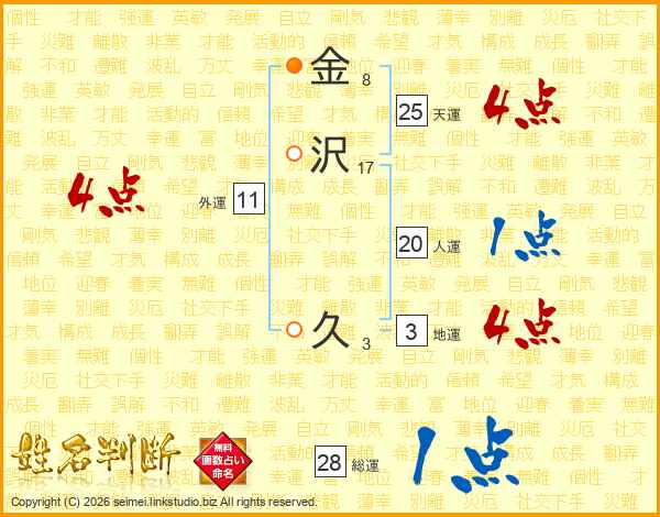 金沢久さんの天運は25画の4点!