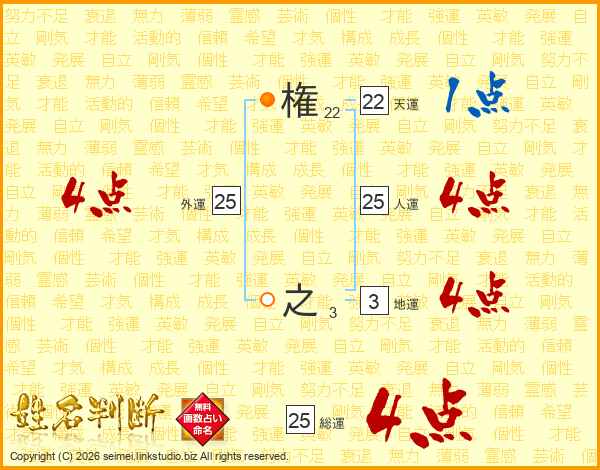 権之さんの総運は25画の4点!