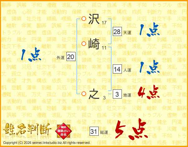 沢崎之さんの総運は31画の5点!