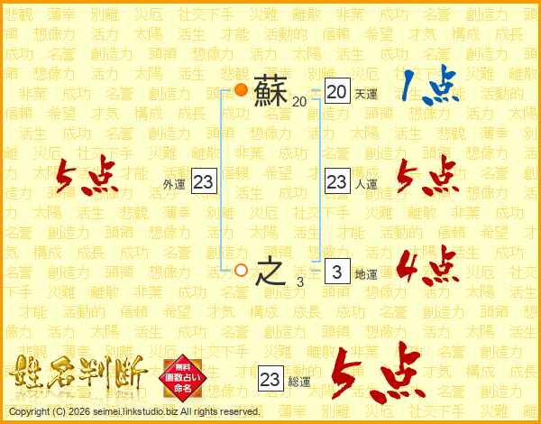 蘇之さんの総運は23画の5点!