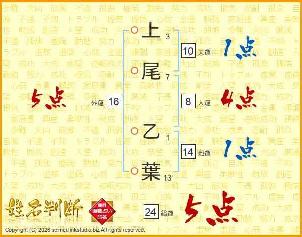 上尾乙葉さんの外運は16画の5点!