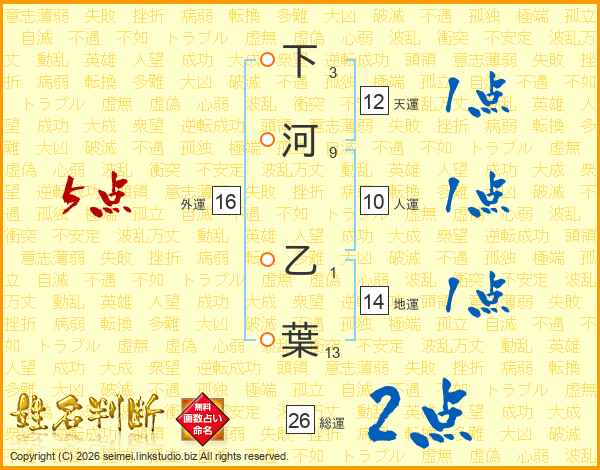 下河乙葉さんの総運は26画の2点!