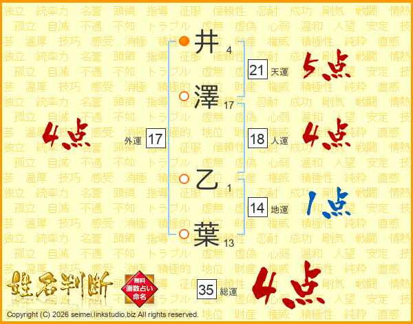 井澤乙葉さんの外運は17画の4点!