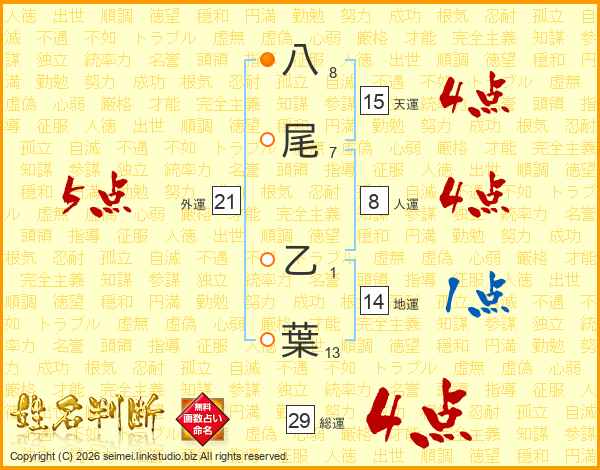 八尾乙葉さんの総運は29画の4点!