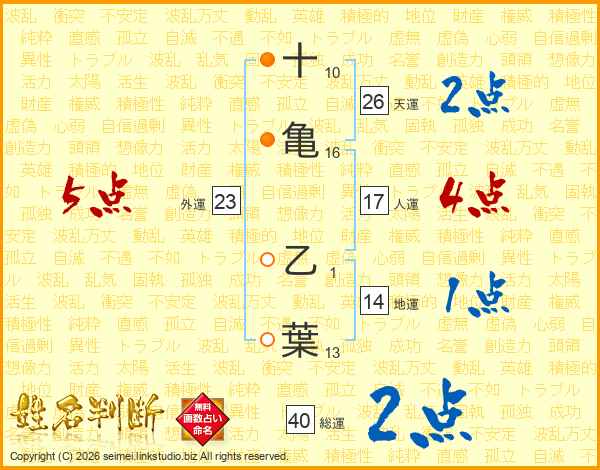 十亀乙葉さんの総運は40画の2点!