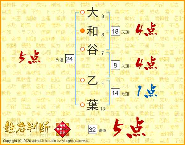 大和谷乙葉さんの総運は32画の5点!