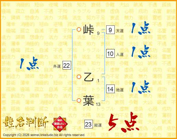 峠乙葉さんの総運は23画の5点!