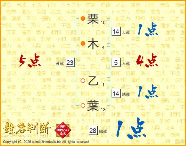 栗(10画)木(4画) 乙(1画)葉(13画)