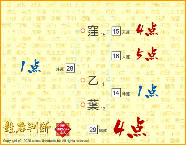 窪乙葉さんの総運は29画の4点!