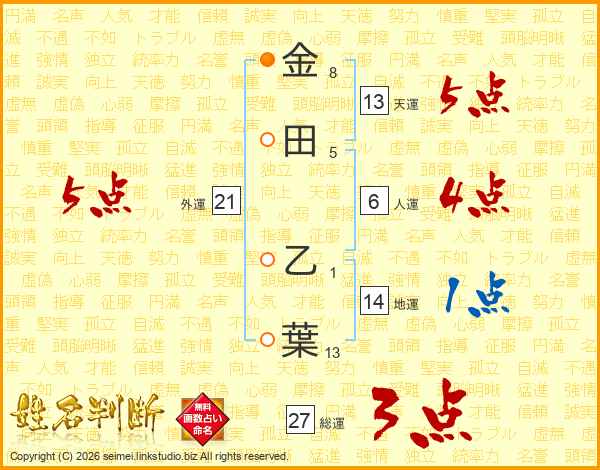 金田乙葉さんの外運は21画の5点!