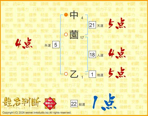 中薗乙さんの総運は22画の1点