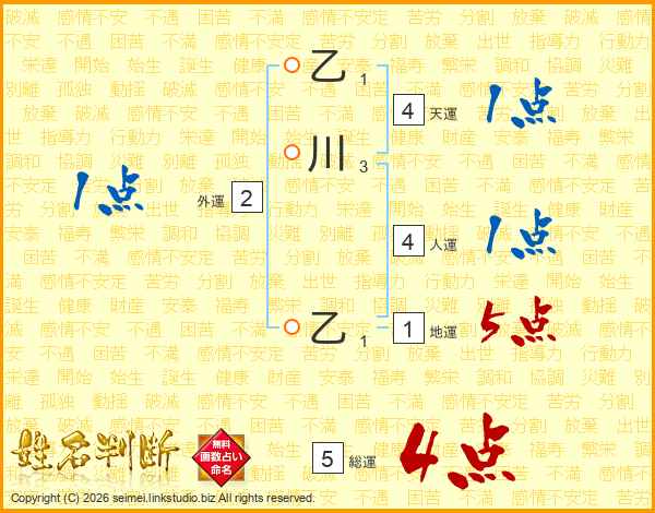 乙川乙さんの総運は5画の4点!