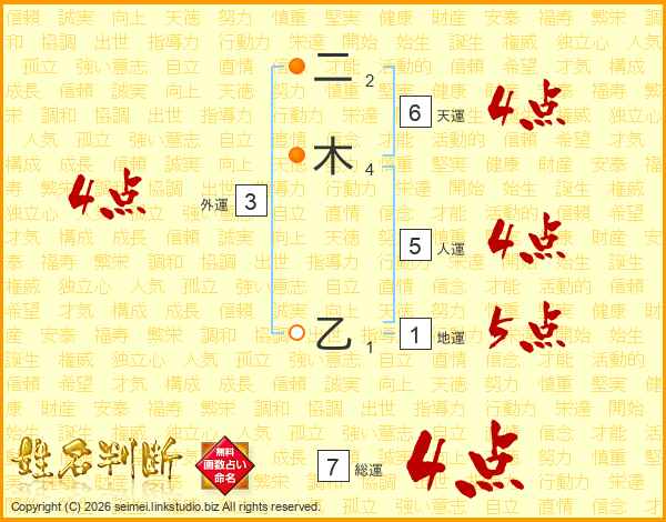 二木乙さんの総運は7画の4点!