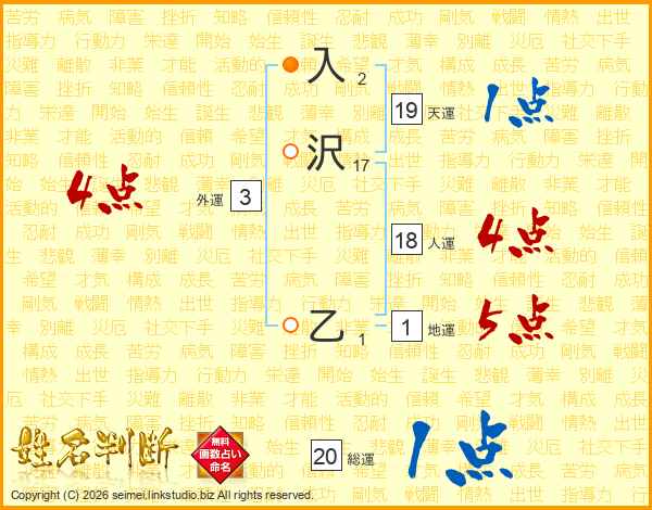 入沢乙さんの天運は19画の1点!