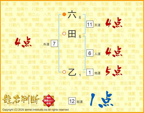 六田乙さんの天運は11画の4点!