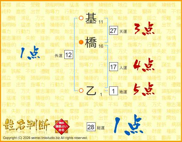 基橋乙さんの総運は28画の1点!