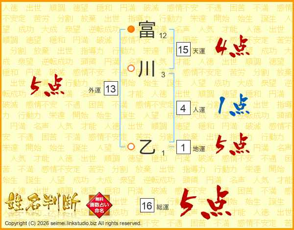 富川乙さんの総運は16画の5点!