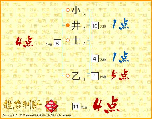 小井土乙さんの総運は11画の4点!