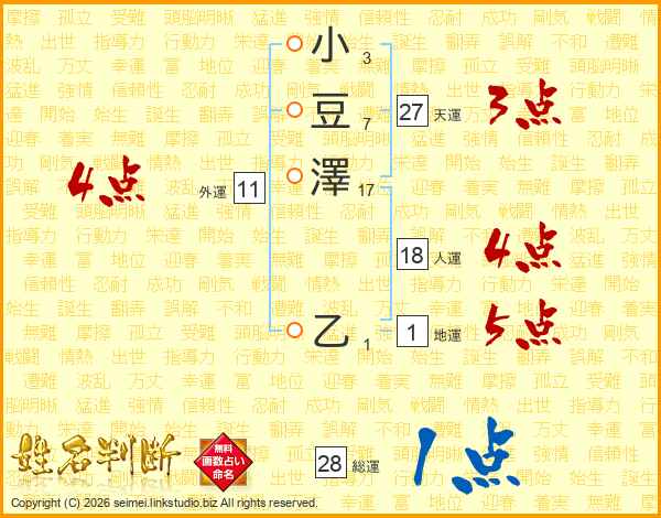 小豆澤乙さんの総運は28画の1点!