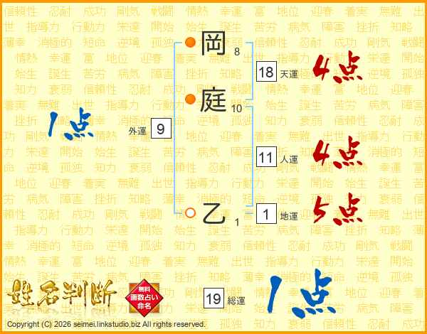 岡庭乙さんの天運は18画の4点!