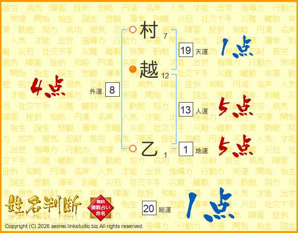 村越乙さんの人運は13画の5点!