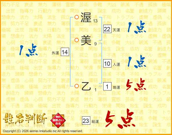渥美乙さんの天運は22画の1点!